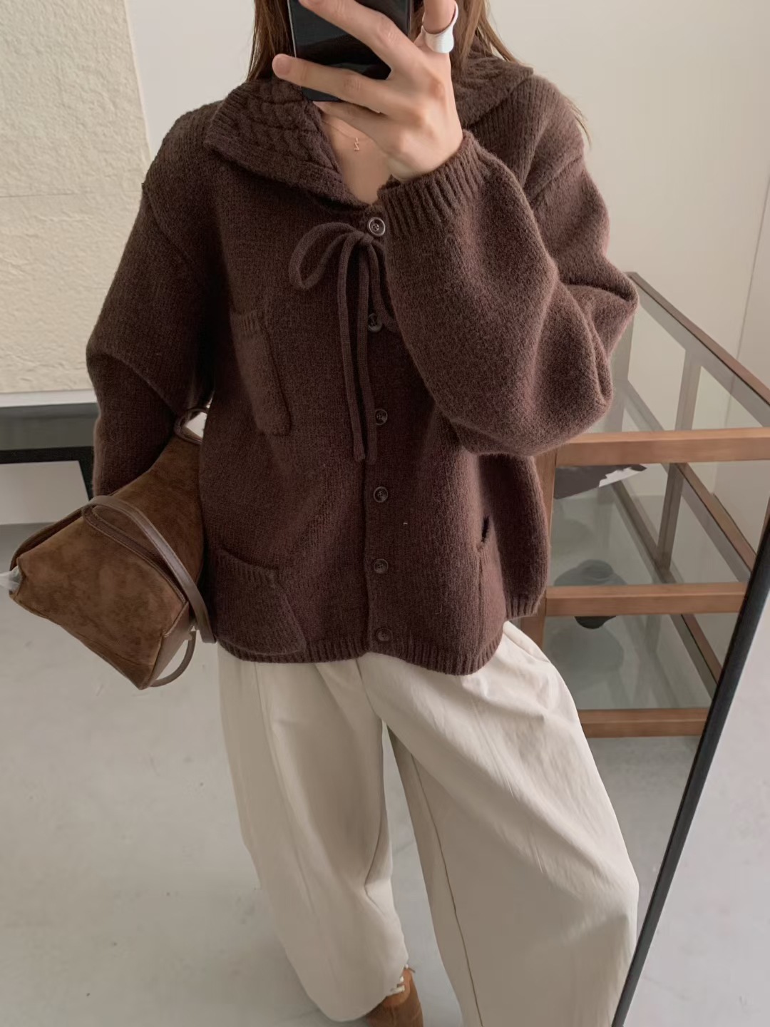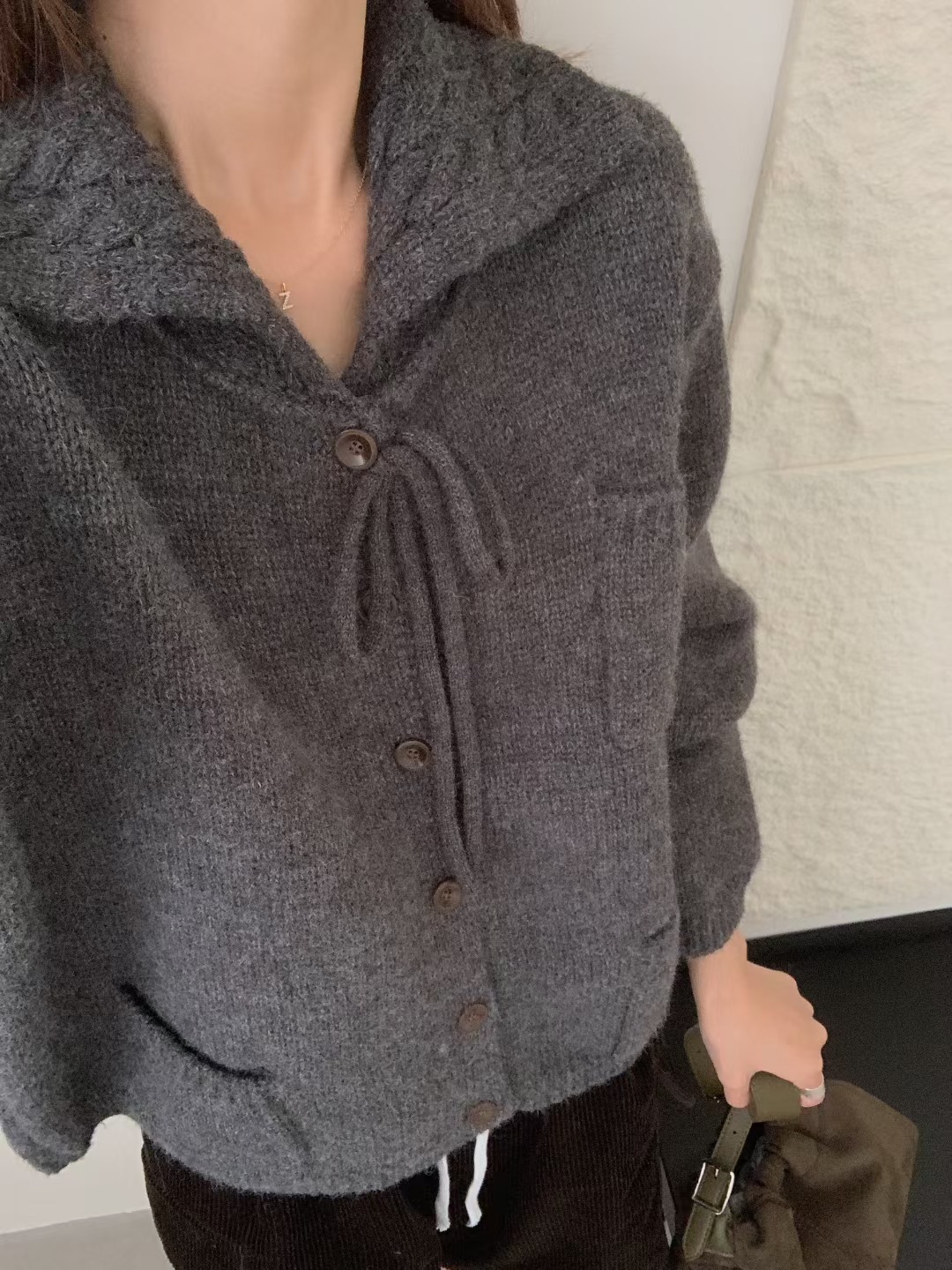 Lapel Loose Knitted Cardigan Casual Women's Sweater